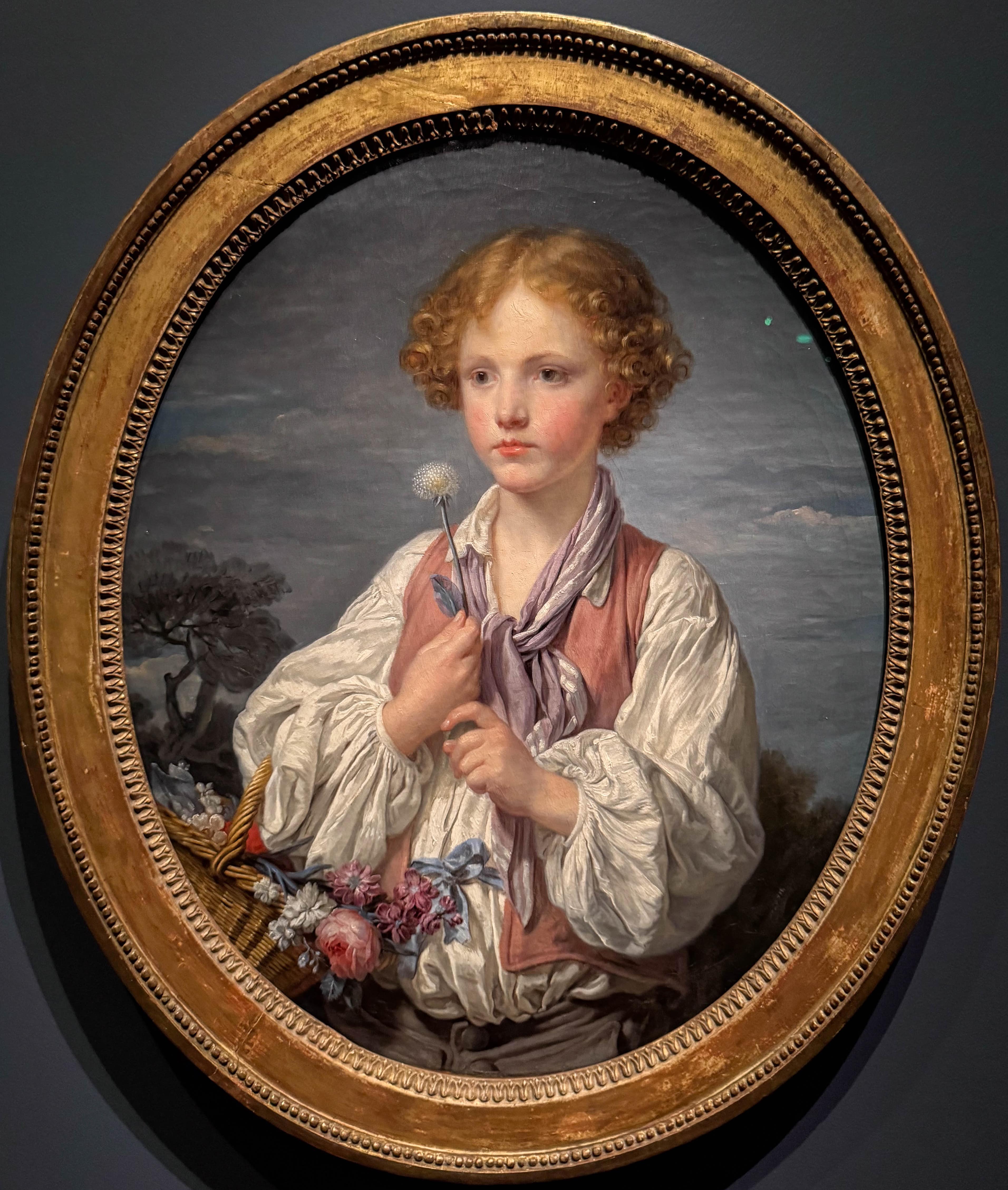 Le jeune Berger (1761) est la représentation de l’amoureux de la jeune demoiselle. Il tient le pissenlit prêt à souffler pour émettre son doux vœux, sans doute adressé à la jeune fille.