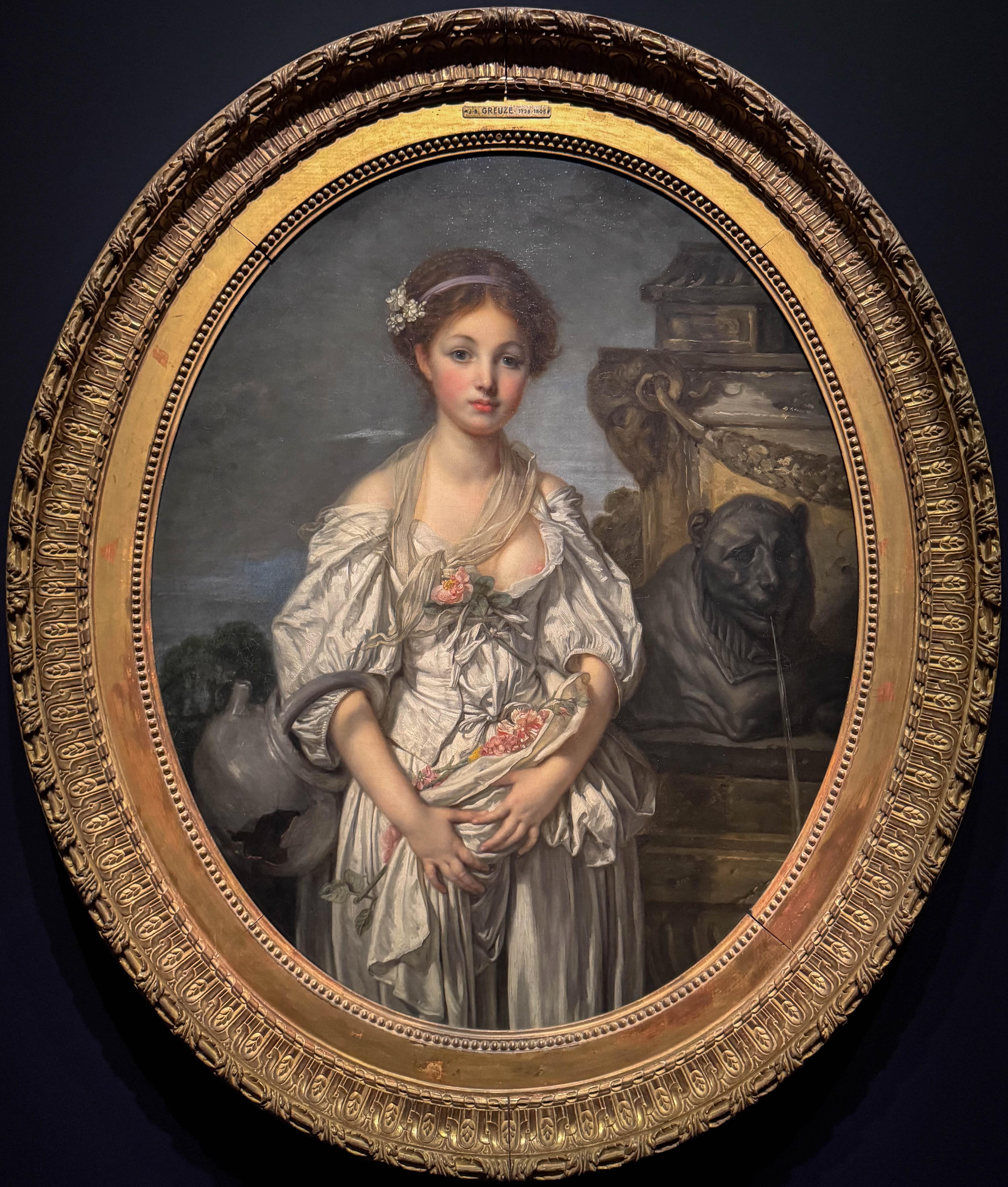 L’une des œuvres connues de Greuze est La Cruche cassée (1771-1772). Au premier regard, l’œuvre est belle : les couleurs sont bien choisies, l’éclairage offre une tendresse particulière et la position de la jeune fille est étudiée. Ensuite, l’on aperçoit la cruche cassée qui évoque la fin de l’innocence, la fragilité. Entre le lion en arrière-plan, l’expression hésitante, les joues empourprées, la tenue de la robe assez basse, l’on comprend l’évocation de la virginité perdue avec sans doute un traumatisme.