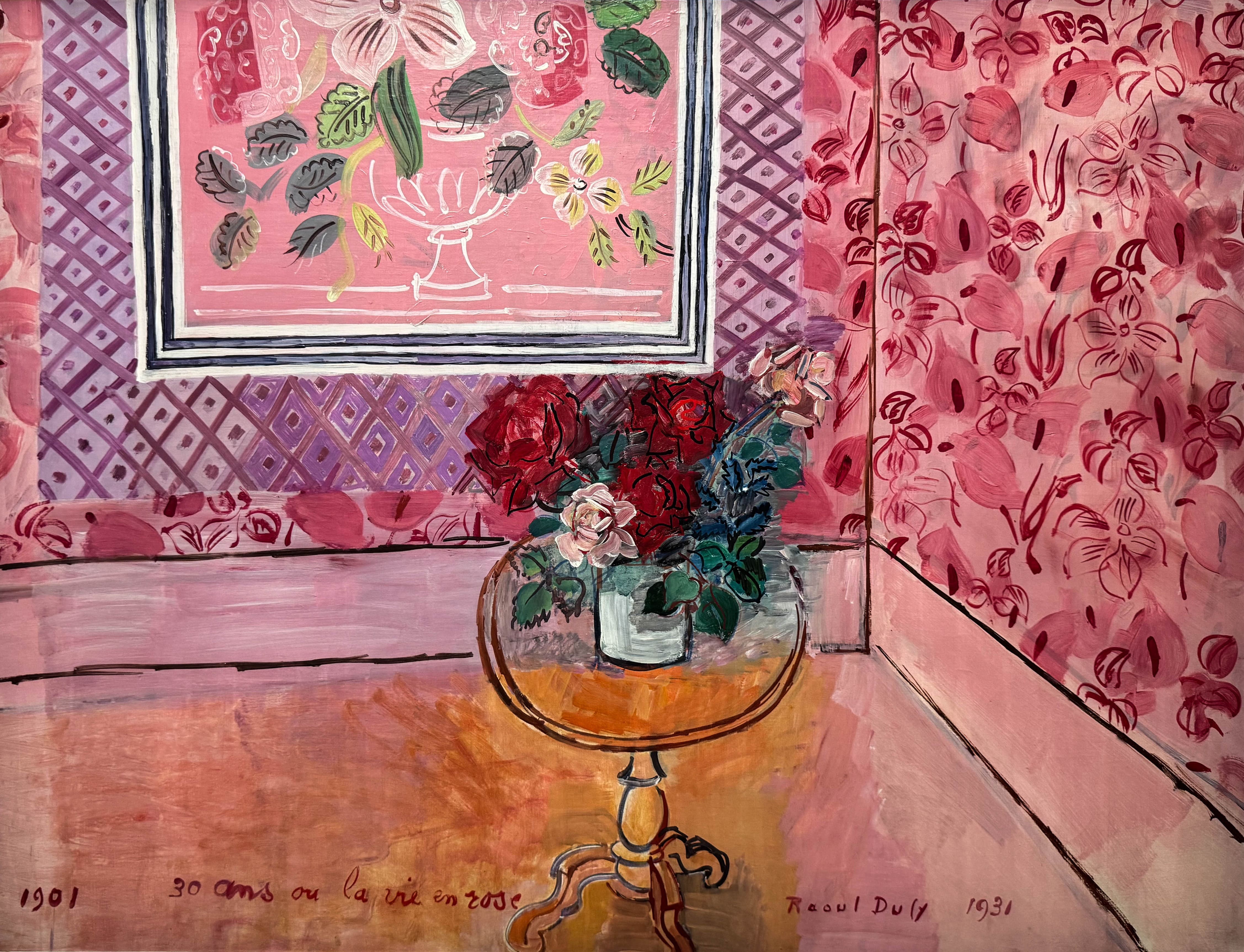 En 1931, la galerie B. Weill consacre une exposition à « La joie de vivre », pour célébrer les 30 ans de son existence. Alors que le contexte des années 30 est peu réjouissant, Raoul Dufy apporte une touche de joie avec son œuvre Trente ans ou la Vie en rose, en 1931. L’usage intense du rose et de ses déclinaisons plus ou moins foncée semble vouloir exprimer, comme le font les fauvistes, une sensation proche de l’émotion. L’idée de liberté s’introduit dans l’œuvre avec le retour des souvenirs de trente années auparavant, qui offre une vision très idéalisée d’une temps révolu. L’œuvre pourrait également être appréhendée comme le témoignage de l’amitié liant Raoul et Berthe.