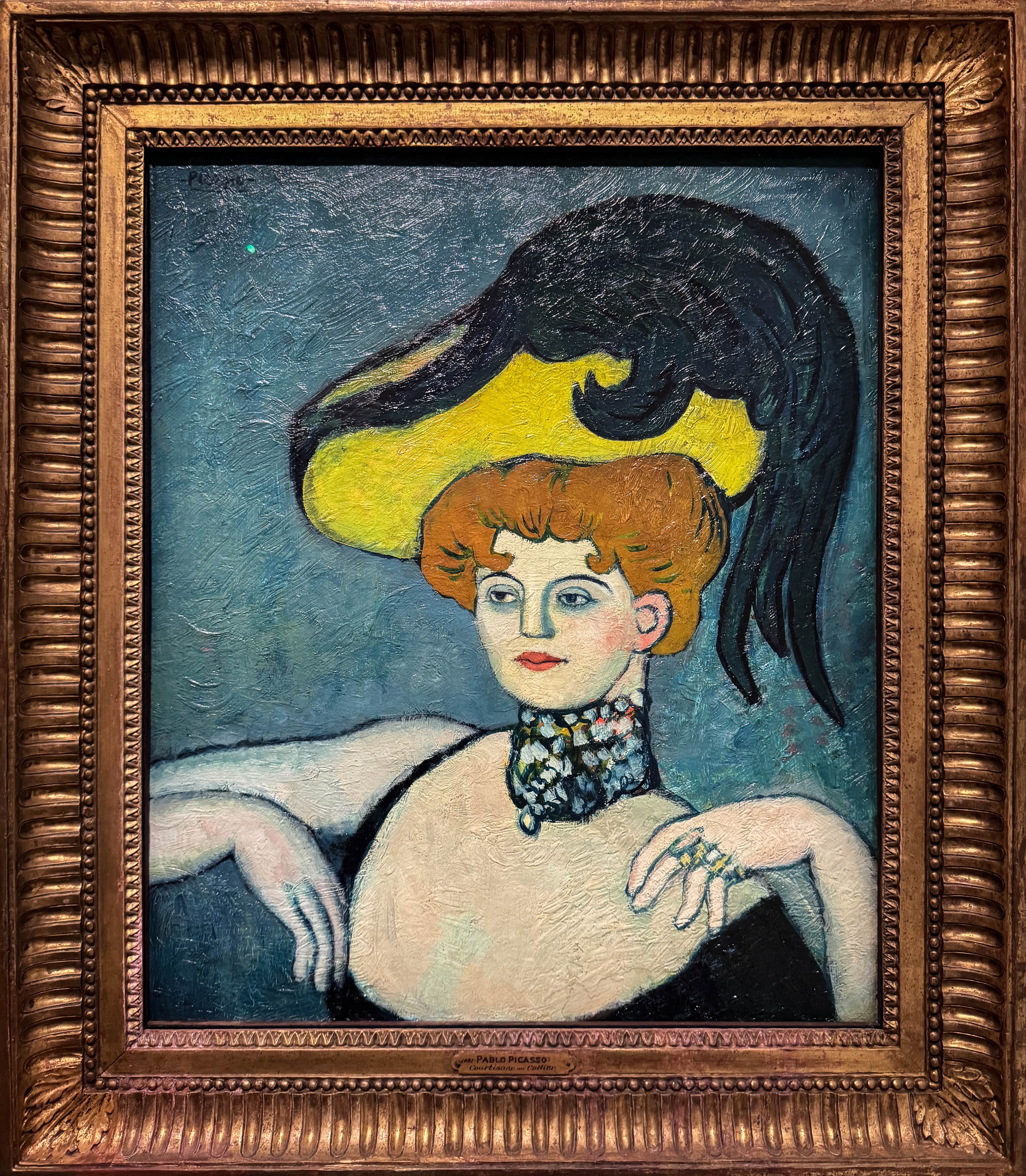 Toujours dans sa période bleue, Picasso produit L’Hétaïre (1901). L’Hétaïre est, dans la Grèce antique, une courtisane ayant un minimum de culture. Les tons froids offrent au spectateur une thématique de tristesse et de distance, une suggestion émotionnelle pour faire réagir. Les gemmes portées en font une femme du monde au port de tête digne et silencieux. Pas de sourire, pas de séduction, juste une élan de fatalité qui tend à remettre en cause la beauté classique. Berthe Weill suit de près la carrière croissante du jeune Picasso et aura le plaisir de faire découvrir cette œuvre au sein de l’exposition qu’elle organise en 1902 dans sa galerie. Deux ans plus tard, les œuvre de Picasso sont suivi d’un grand intérêt par les collectionneurs.