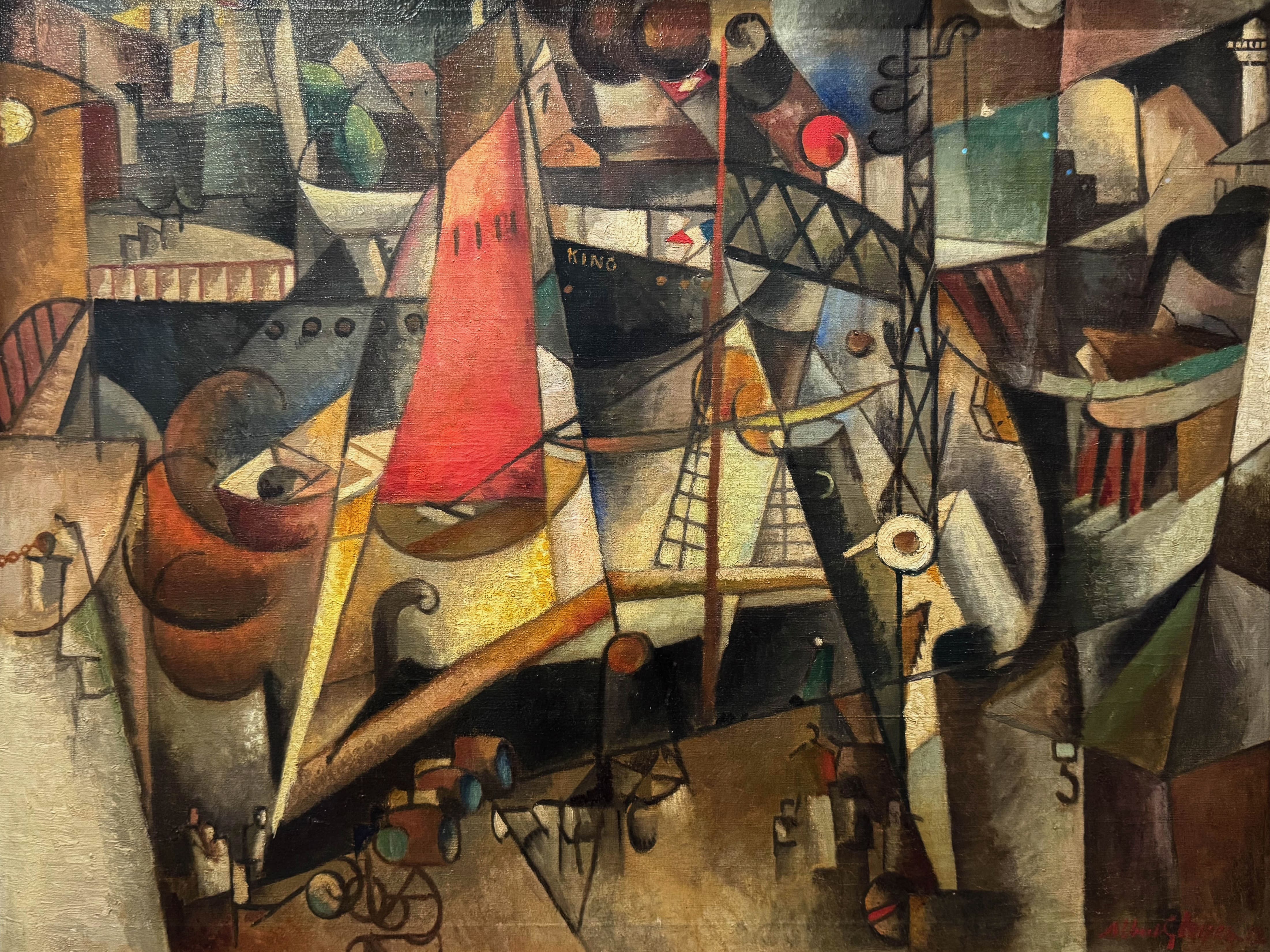 Toujours en avance sur son temps, Berthe joue un rôle dans la reconnaissance des cubistes. La querelle est importante depuis 1912 quant à la présentation des cubistes au public … De fait, en 1913, Berthe met en œuvre une exposition impliquant Fernand Léger, Albert Gleizes et Jean Metzinger alors que Guillaume Apollinaire publie un ouvrage sur les peintres du cubisme. Albert Gleizes réalise Le Port (Marseille) en 1912. L’œuvre présente la modernité en présentant des bateaux, des quais, des bâtiments entremêlés aux formes géométriques. Le réel n’a plus d’importance et l’œuvre devient une construction mentale.