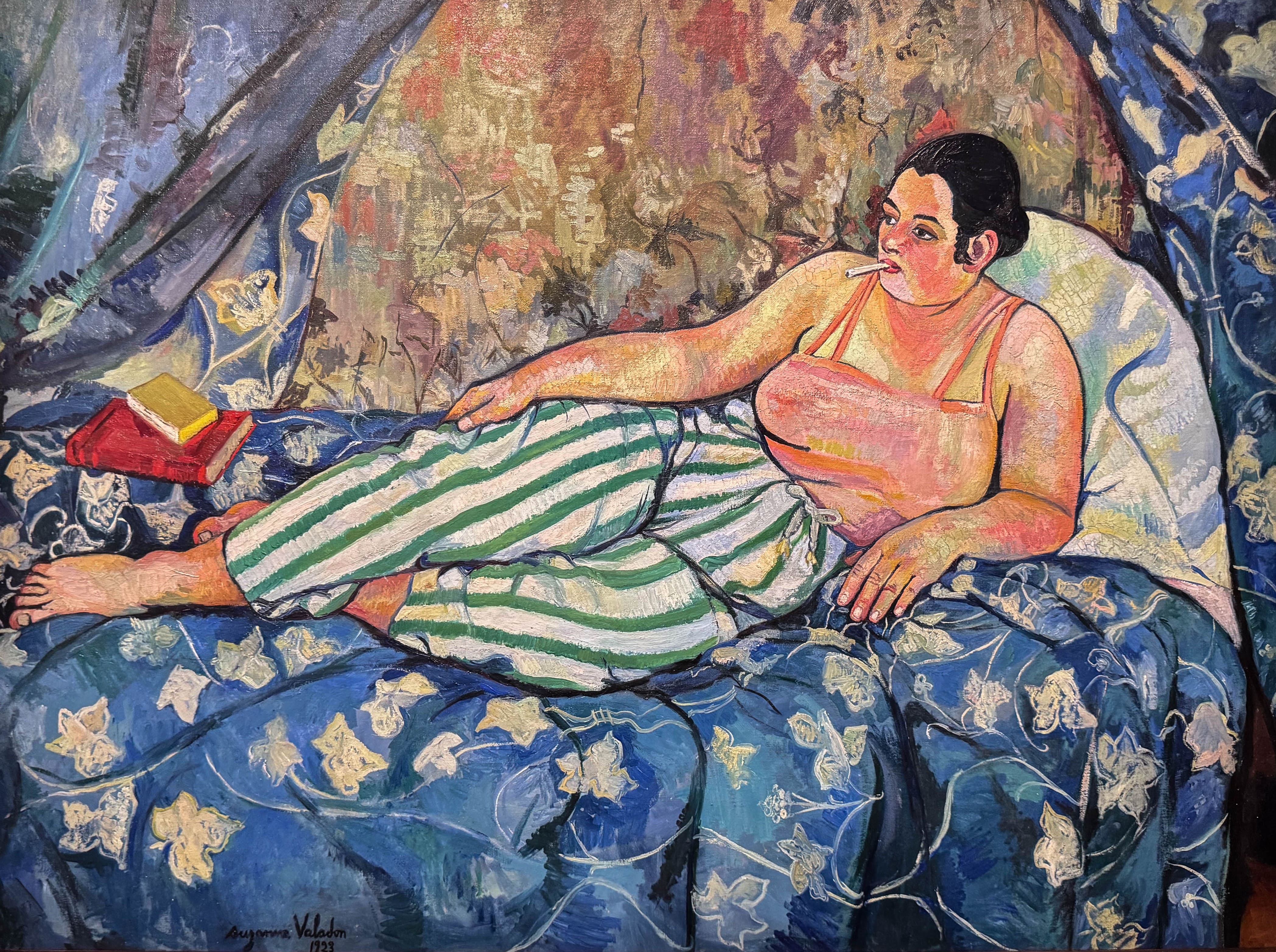 Tout comme Berthe Weill, Suzanne Valadon est prête à enfreindre les règles de l’époque et à faire preuve de l’audace que l’on retrouve dans les œuvres de Suzanne Valadon. L’amie de Berthe réalise La Chambre bleue en 1923. L’œuvre sera exposée en 1927 au sein de la Galerie Weill. Le bleu est présent et donne une structure à l’œuvre, concourent à construire une atmosphère presque étouffante. Le dessin et net et les contours très marqués et empreints de réalisme.