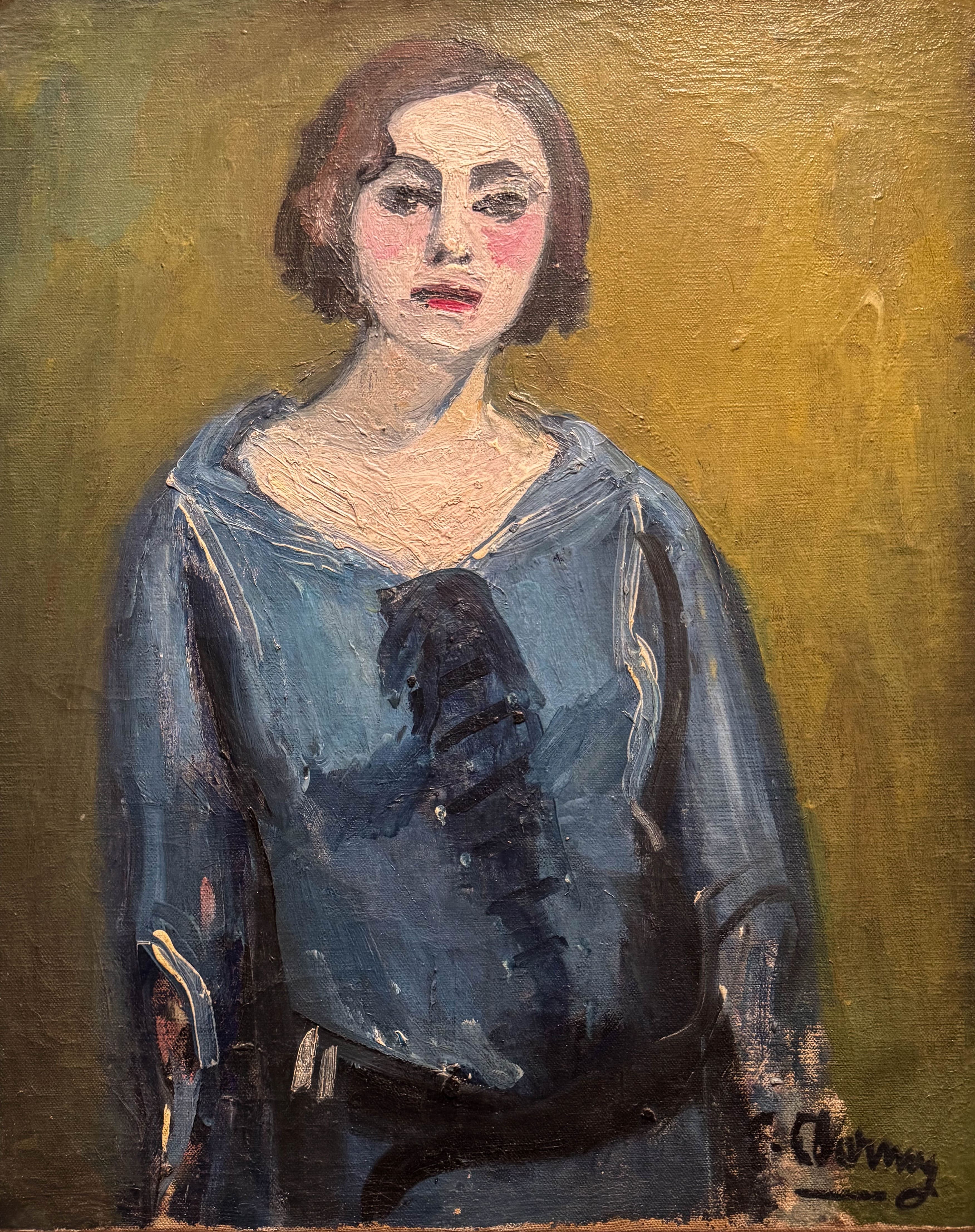 Emily Charmy est une des trop rares femmes ayant une place dans la peinture à cette époque. Dans son Autoportrait (1906-1907), elle se représente en buste, sur un fond plutôt neutre, les couleurs sont sombres et profondes. La couleur exprime mais reste sobre contrairement aux artistes précédemment présentés. Elle ne cherche ni à éblouir ni à séduire mais tout simplement à montrer qu’elle est là et qu’elle compte dans le champ artistique de son époque. Son amie Berthe expose ses œuvres dans de nombreuses expositions.