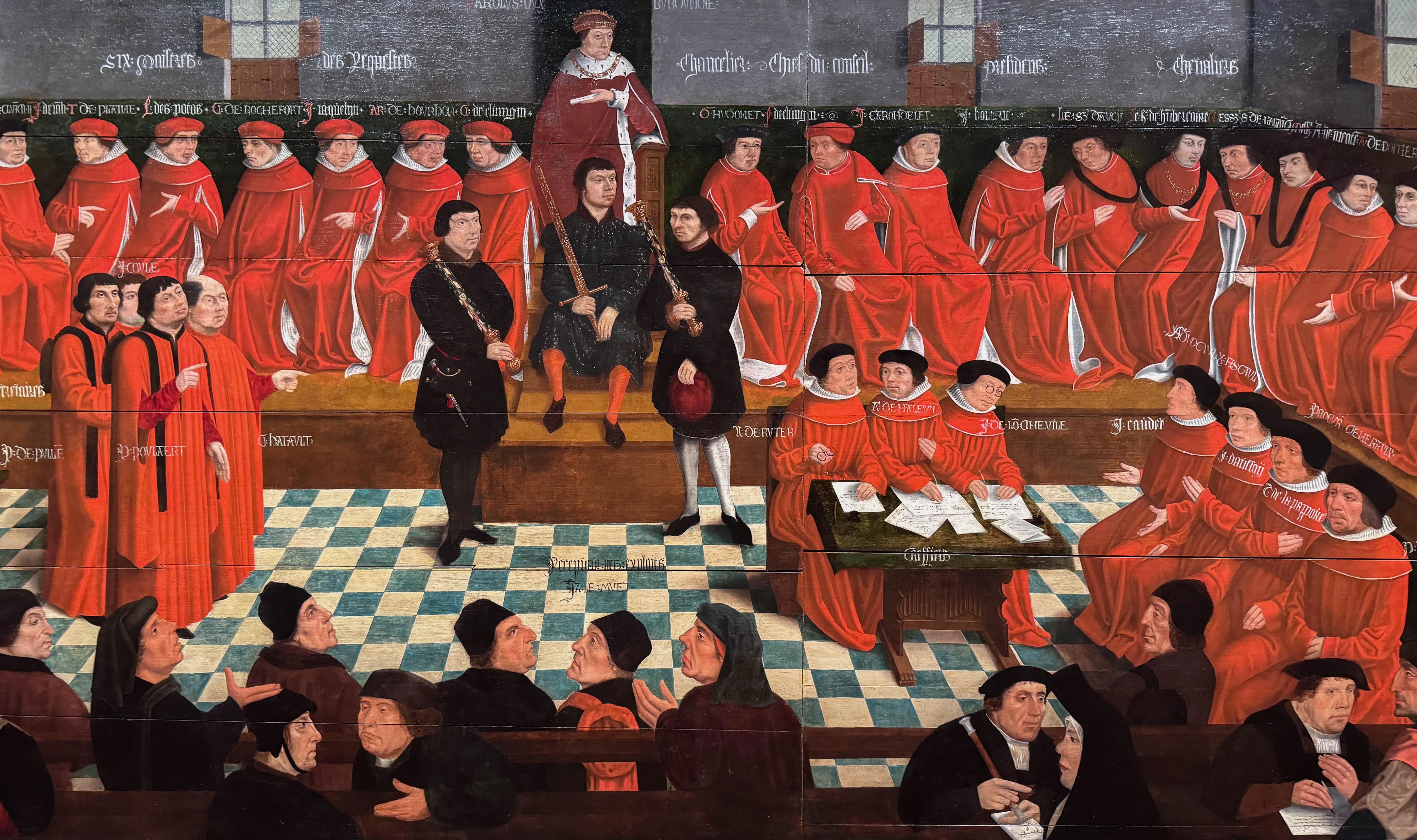 Le Duché de Bourgogne est un ensemble imposant qui mérite une administration efficace. En 1473, Charles le Téméraire, le Duc de Bourgogne, établit le Parlement de Malines qui n’est autre qu’une institution judiciaire gérant l’ensemble des cours de justice du duché. Le Parlement de Malines est ouvert en 1474 lors d’une séance solennelle où le Duc ne sera pas présent. Malgré tout, il sera représenté sur une peinture rappelant l’évènement.